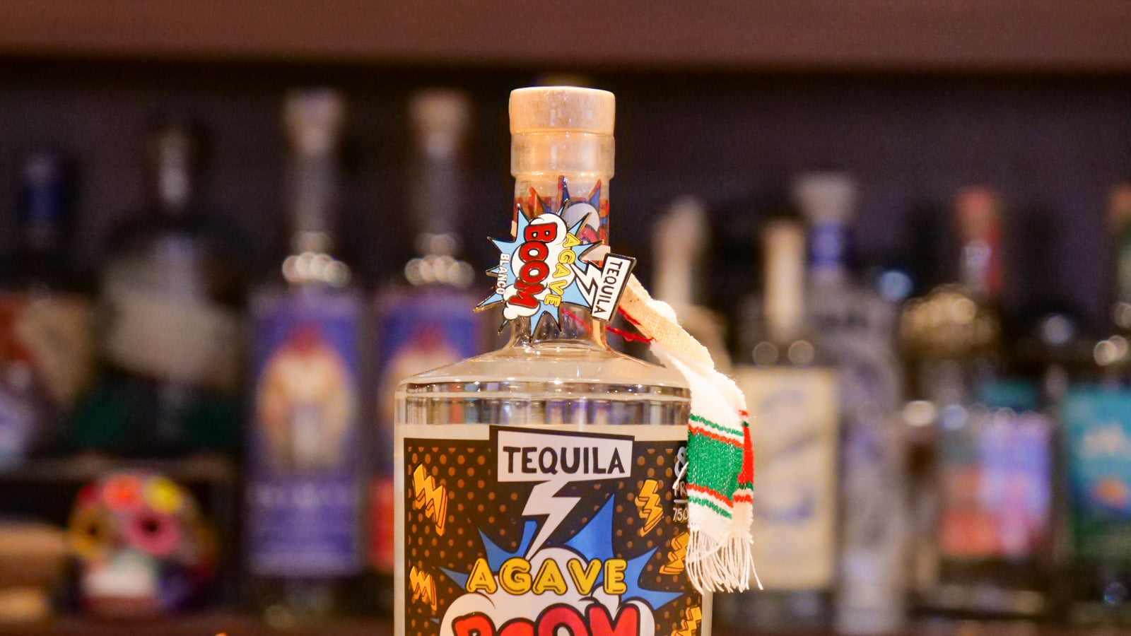 テキーラ作りの名門、カサ マエストリのハウスブランドで、アメコミみたいなボトルは一度見ると忘れられないです。